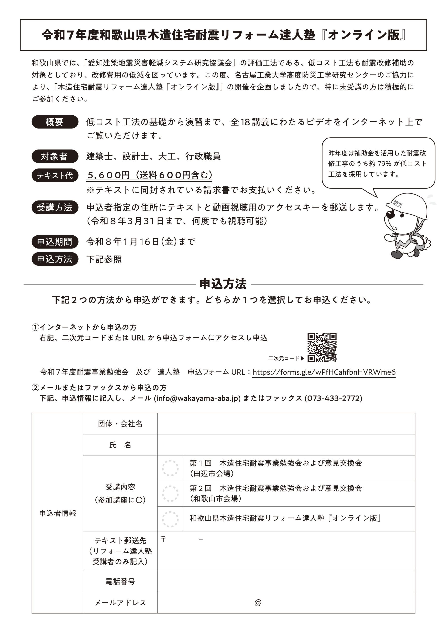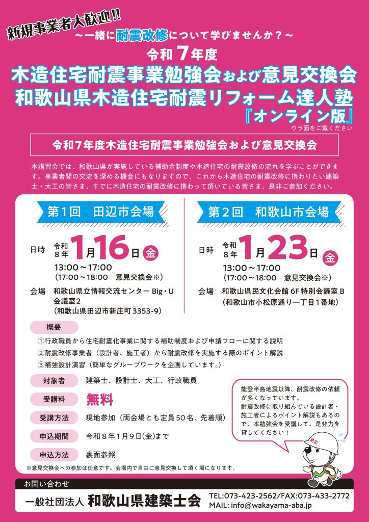 令和7年度木造住宅耐震事業勉強会 | 一般社団法人 和歌山県建築士会