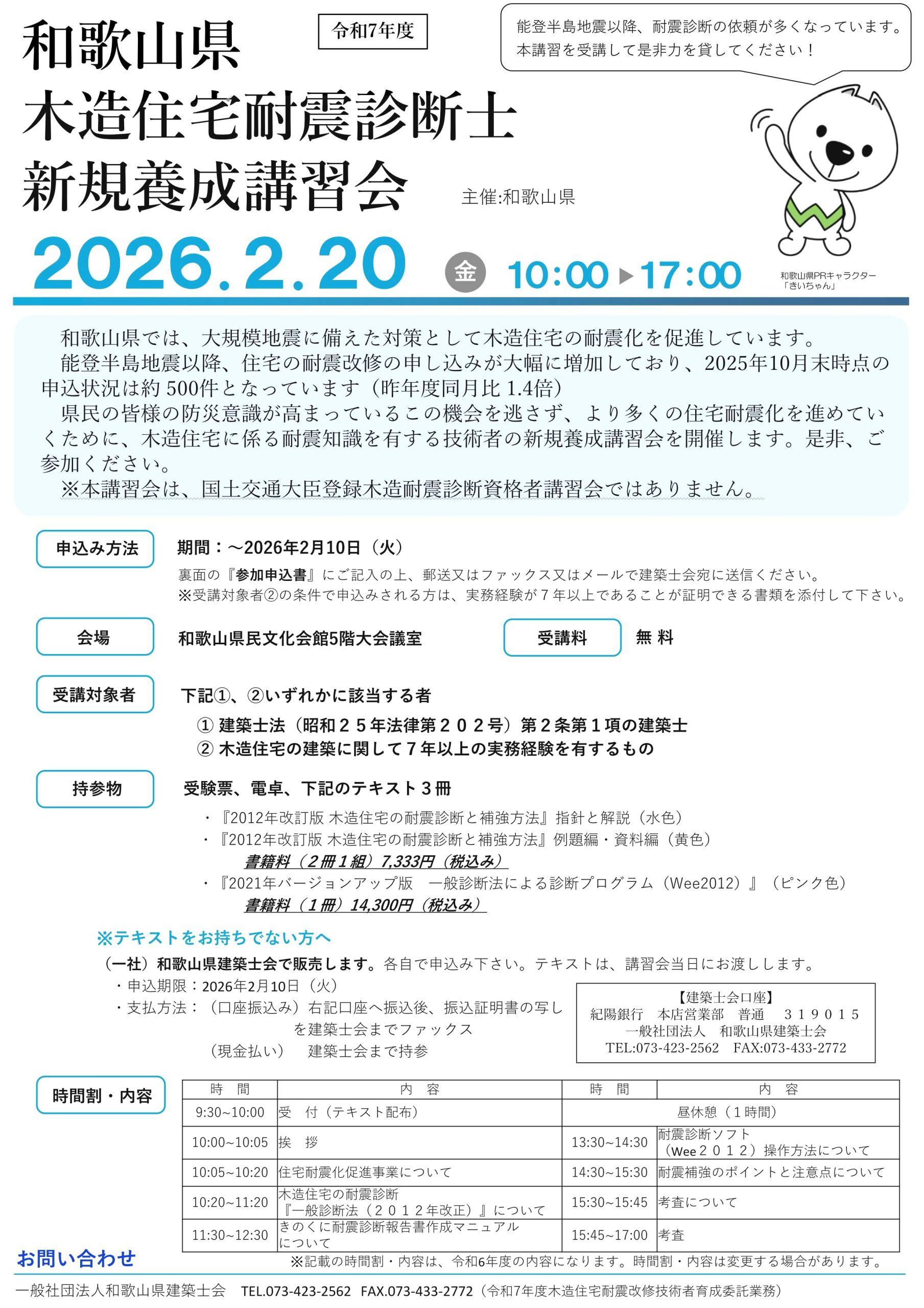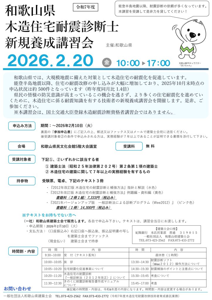 令和7年度和歌山県地震被災建築物応急危険度判定士認定講習会について